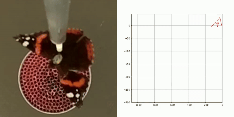 Butterfly Attachment System – A non-magnetic rod is mounted on top of the cylinder, with an encoder at its centre. A fine tungsten rod (15 cm long, 0.5 mm in diameter) serve as the encoder shaft, connecting to the encoder (1). To facilitate quick and secure attachment, a small plastic tube (20 mm in length, 2 mm in diameter, with a 0.5 mm hole) is affixed to the distal end of the rod. All procedures are non-invasive and do not harm the butterflies or moths; after testing, they are released in good body and wing condition and can continue their migration.