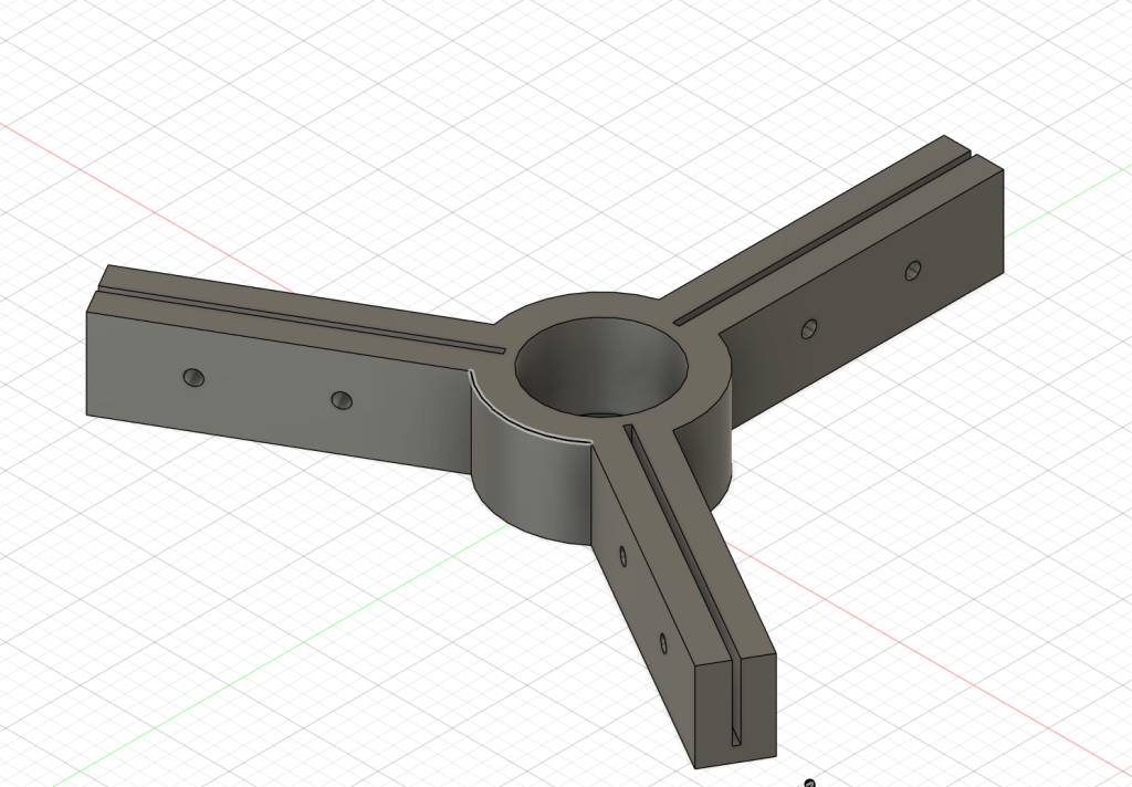 You can use a waterproof UV LED strip (0.5-2 m length) which is readily available on Ebay, Amazon or Aliexpress. For more information about different light sources and how they affect the efficiency of moth trapping, please see our Moth Trapping and Catching articles. The UV LED strip is wrapped around a 35 cm PVC tube (41 cm diameter), which is mounted to a 3D-printed 3-arm clamp bracket (see image below). Note: A non-waterproof LED strip can be used protected with an electro-preservative coating. This is preferable to waterproof encapsulation, as default waterproof layers can absorb part of the UV radiation emitted by the LEDs.