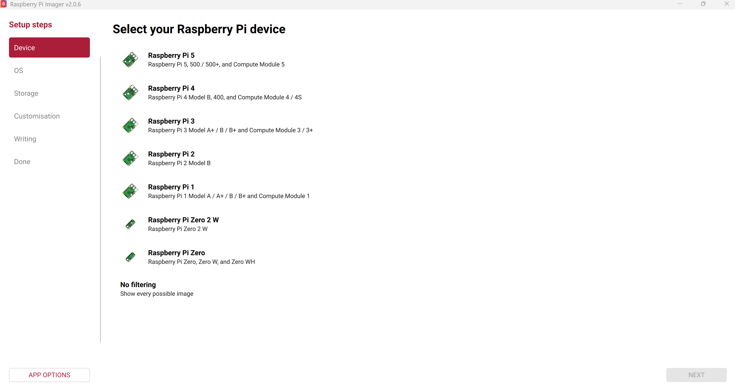- Open Raspberry Pi Imager and choose your platform (Raspberry Pi 3, 4, or 5; see Figure 1).