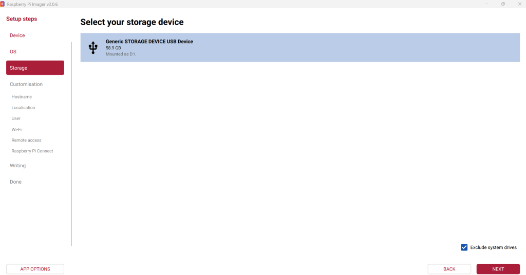 - Insert a clean micro-SD card with a minimum storage of 64 GB into your computer (minimum for RPi – 8 Gb, ideal 64-128 Gb)