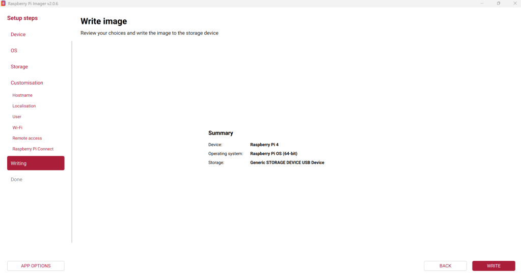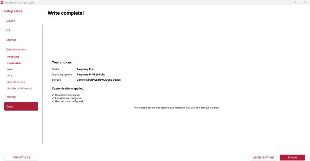 - Customize the settings (hostname, Wi-Fi configuration, login and password, etc.), and write the image to the SD card (figure 4).