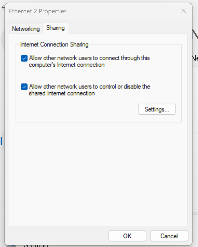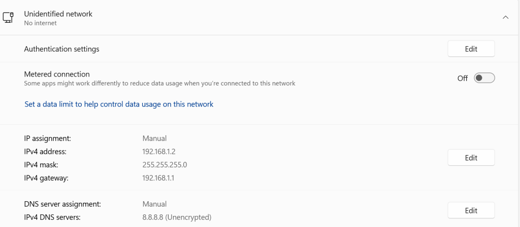 In this setup, you can connect directly to your Raspberry Pi for remote control and video recording. To do this, simply connect the Raspberry Pi to your laptop using an Ethernet cable and create a direct Ethernet connection by assigning static IP addresses on both the Raspberry Pi (Raspberry Pi OS) and your computer (Windows network adapter settings). To enable file transfer, activate file sharing on the Windows Ethernet adapter.