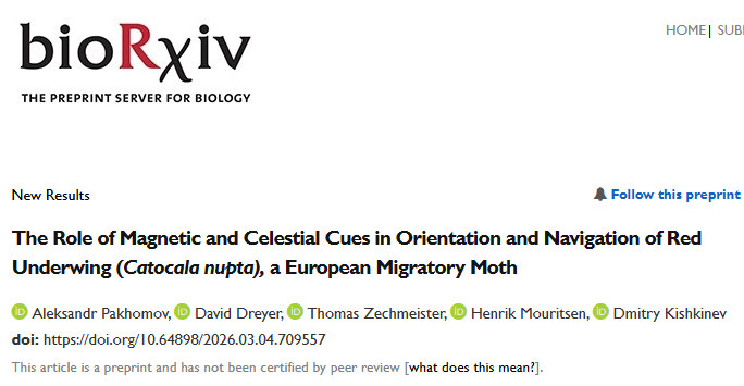The Role of Magnetic and Celestial Cues in Orientation and Navigation of Red Underwing (Catocala nupta), a European Migratory Moth (2026)