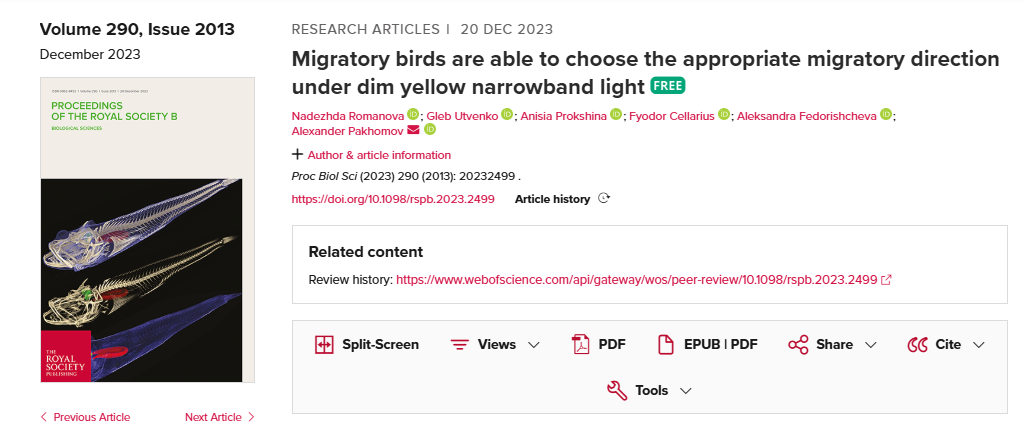 Migratory birds are able to choose the appropriate migratory direction under dim yellow narrowband light (2023)