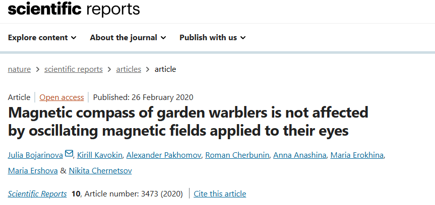 Magnetic compass of garden warblers is not affected by oscillating magnetic fields applied to their eyes (2020)