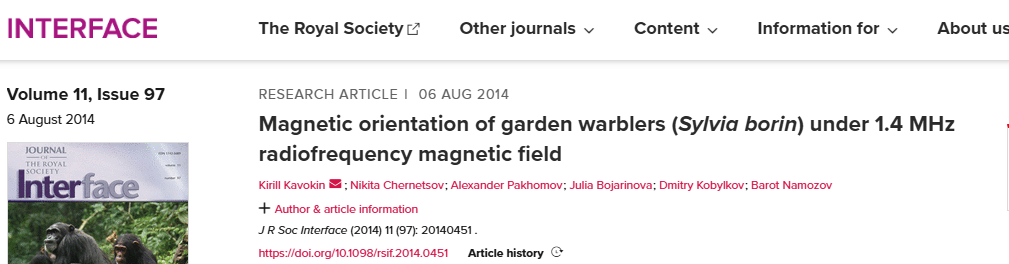 Magnetic orientation of garden warblers (Sylvia borin) under 1.4 MHz radiofrequency magnetic field (2014)