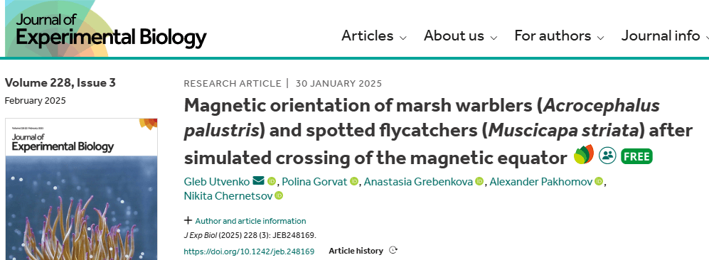 Magnetic orientation of marsh warblers (Acrocephalus palustris) and spotted flycatchers (Muscicapa striata) after simulated crossing of the magnetic equator (2025)
