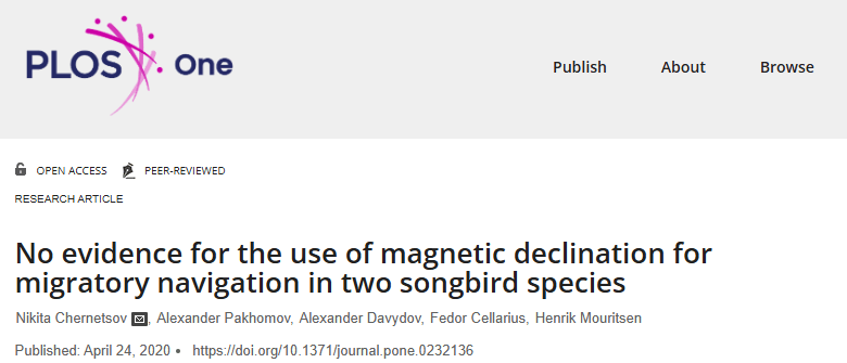 No evidence for the use of magnetic declination for migratory navigation in two songbird species (2020)