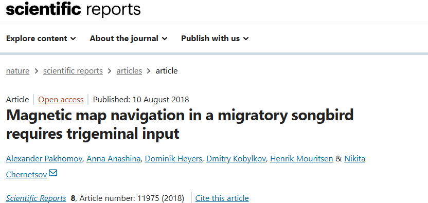 Magnetic map navigation requires input from the trigeminal nerve in a migratory songbird (2018)