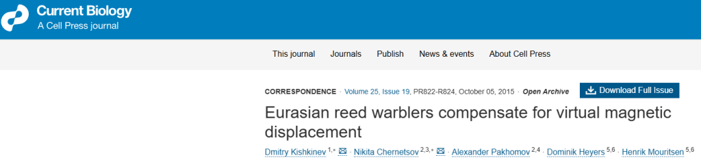 Eurasian reed warblers compensate for virtual magnetic displacement (2015)
